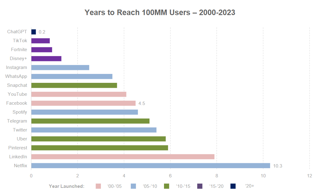90% of ChatGPT users are outside the U.S. — a milestone the internet only reached in its 23rd year. ChatGPT did it in three.