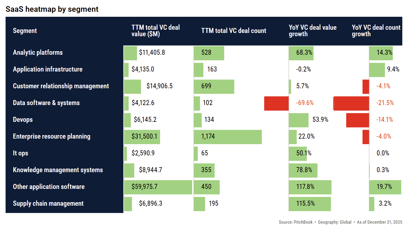 Historically, SaaS companies created value by building interfaces and workflows on top of complex technical infrastructure. But AI models are increasingly capable of replicating or automating those workflows directly, reducing the need for separate software layers. PitchBook highlights several important dynamics: