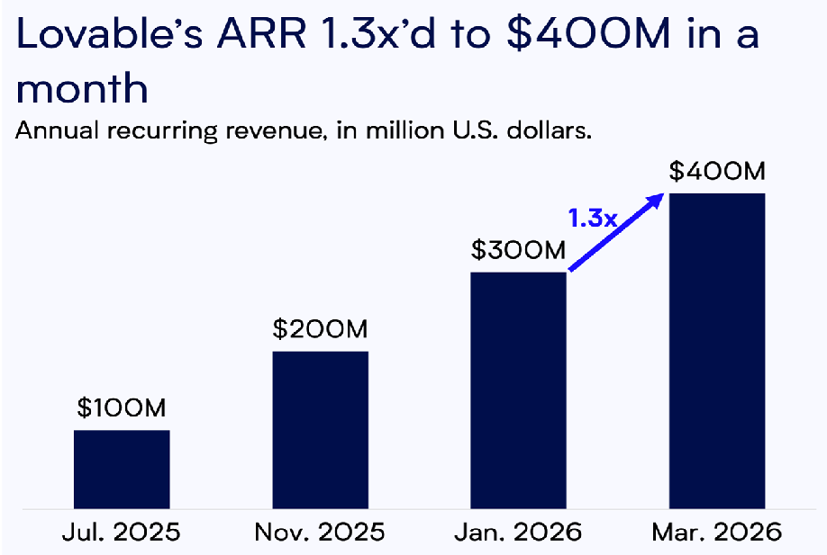 The ecosystem around that trend has continued to accelerate. One of the companies most associated with the movement, Lovable, reportedly reached $400M in annual recurring revenue this week, growing roughly 1.3× month over month—an extraordinary trajectory for a developer platform.