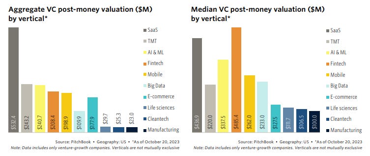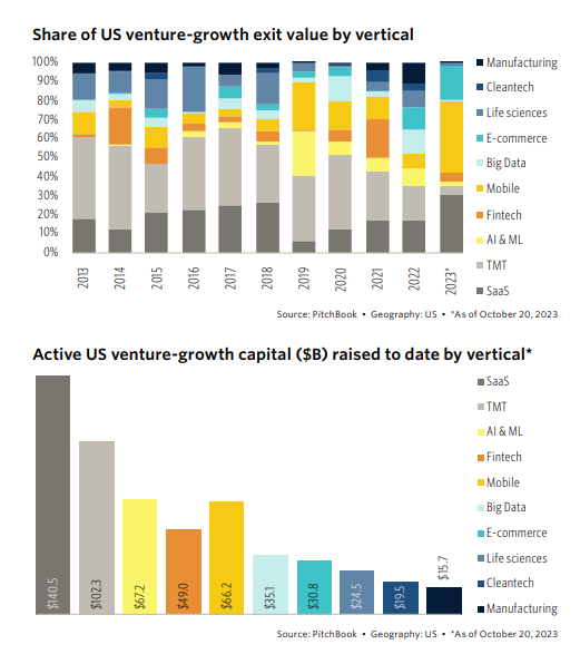 The AI & ML sector, similar to the SaaS industry, holds a significant amount of untapped value. As of Q3 2023, the combined post-money valuation of active U.S. VC-backed AI & ML startups in the venture-growth stage is estimated at $240.7 billion, with an average startup valuation of $337.5 million. This high aggregate value, along with considerable media and investor interest, suggests a strong potential for returns when the IPO market reopens.