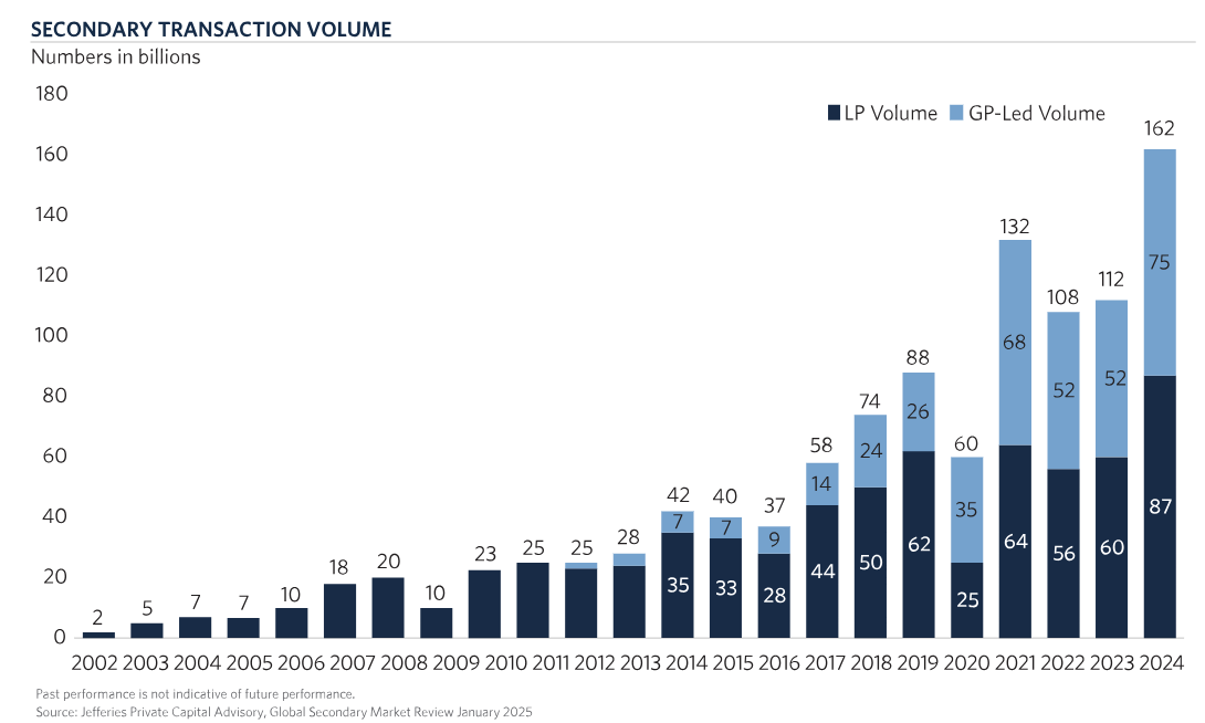 And the numbers? Huge. Global secondary transaction volume hit a record $162B in 2024, blowing past the $132B high of 2021. LP-led deals made up $87B, with roughly 40% coming from first-time sellers—the same proportion expected this year. Two headline-grabbing transactions set the tone early: