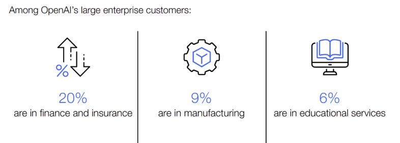 Moving on to my usual AI update, OpenAI’s recent internal graphs show just how explosive its growth has been: by July 2025, ChatGPT now handles over 2.5 billion prompts per day—a ~150% jump since late 2024. Weekly active users surged from ~300 million in December to an estimated 500 million by March, with some analysts putting global MAUs near 800 million. In the U.S. alone, ChatGPT now processes around 330 million daily prompts. Finance and insurance remain strong enterprise verticals, making up roughly 20% of OpenAI’s largest customers.