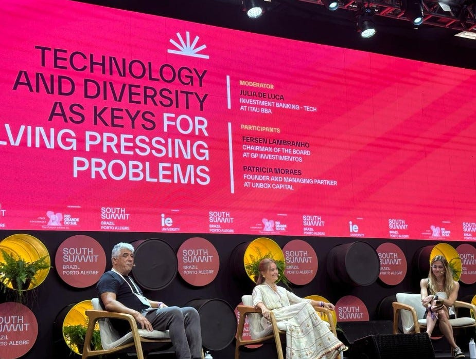 This week, I had the incredible privilege of both attending and speaking at South Summit Brazil 2024. It was an amazing event, attracting over 23,000 attendees, including more than 3,000 startups and over 900 investors. On stage, I had the opportunity to speak alongside Fersen Lambranho, President of the Board at GP Investimentos/G2D, and Patricia Moraes, Founding Partner at Unbox Capital. We engaged in a thought-provoking discussion about the critical roles of diversity and technology in addressing today's pressing challenges.